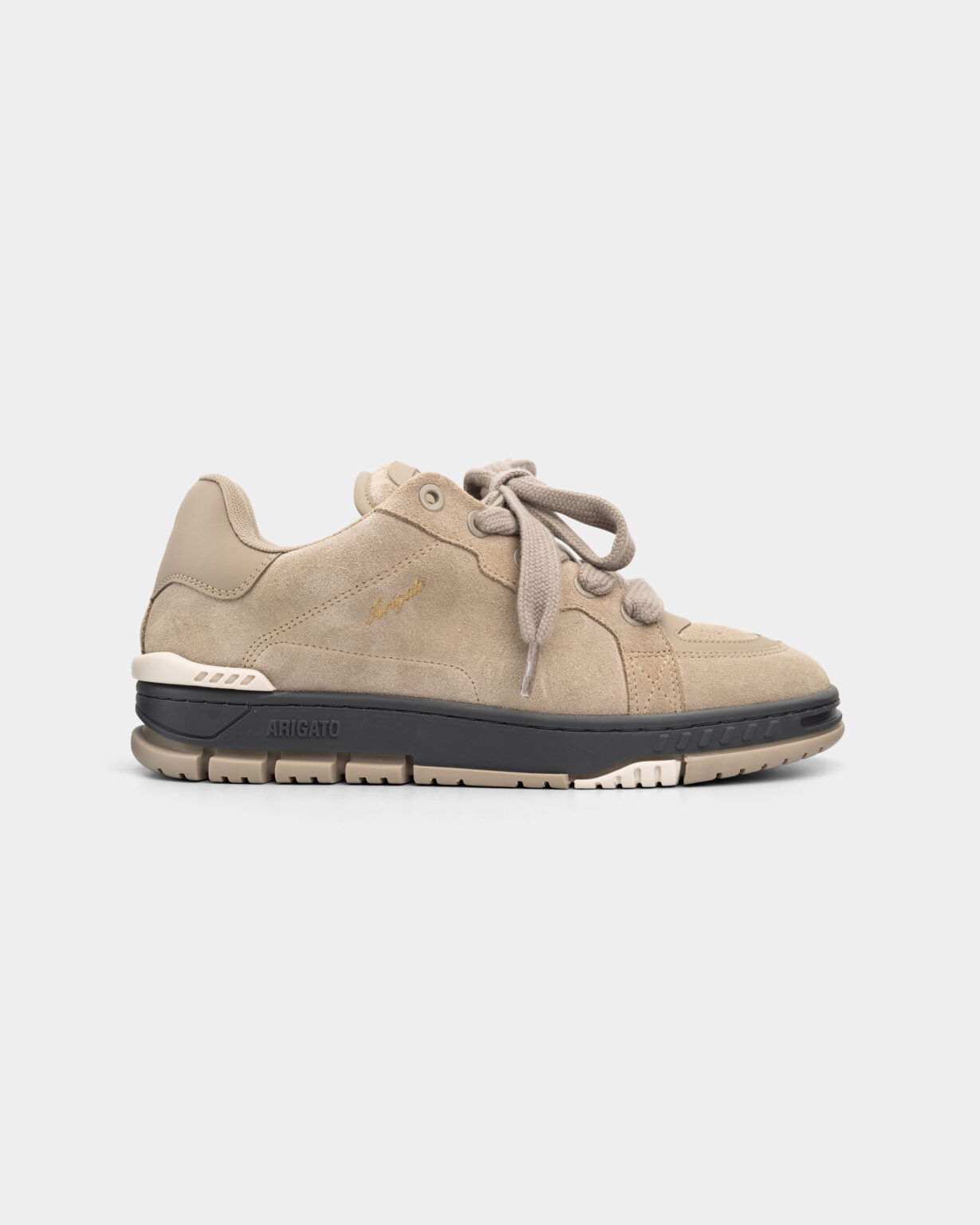 Part of the Area collection, the tonal Area Haze sneaker is handmade from LWG-certified leather and recycled polyester. This model is set on expanded rubber soles that are custom-molded with angular grooves and an ‘Arigato’ logo. Included in the shoebox is both wide and narrow laces.